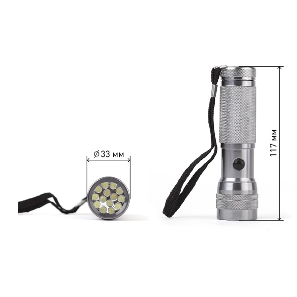 Фонарь с 14 белыми светодиодами и корпусом из анодированного алюминия. Данное покрытие защищает изделие от царапин и механических повреждений. Ручка фонаря рифлёная - устройство не выскользнет из рук. Кнопка включения находится прямо под большим пальцем, она покрыта мягким резиновым материалом. В комплекте ремешок для удобной переноски на запястье. Фонарь работает от 3 мизинчиковых батареек (ААА). Резиновый уплотнитель защищает внутреннюю контактную часть устройства от попадания влаги и пыли. От одного комплекта алкалиновых батареек фонарь светит до 25 активных часов. Дальность светового луча - 54 метра. Световой поток - 50 лм.
