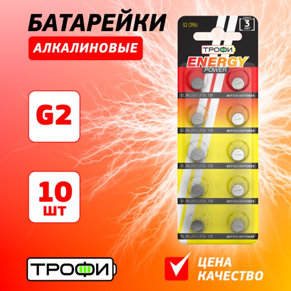 Элемент питания алкалиновый "таблетка" LR59/LR726/G2/396 (блист.10шт) Трофи C0034936