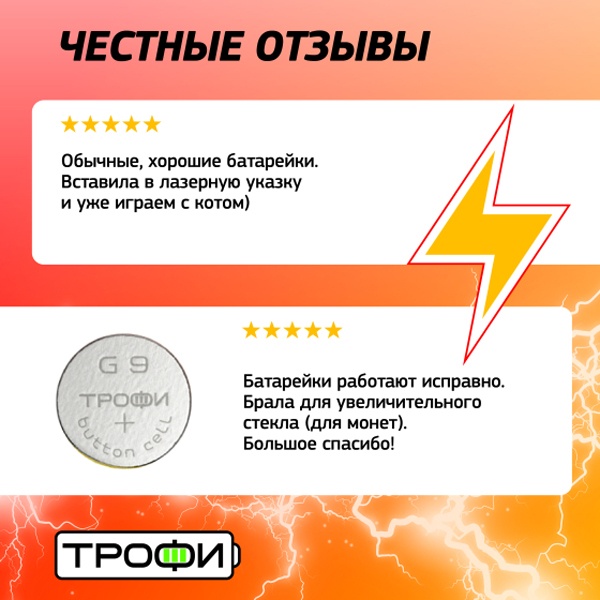 Щелочные элементы питания таблетка Трофи G9, (10 шт) в блистере C0034937