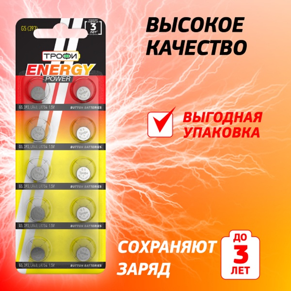 Щелочные элементы питания таблетка Трофи G5, (10 шт) в блистере C0035053