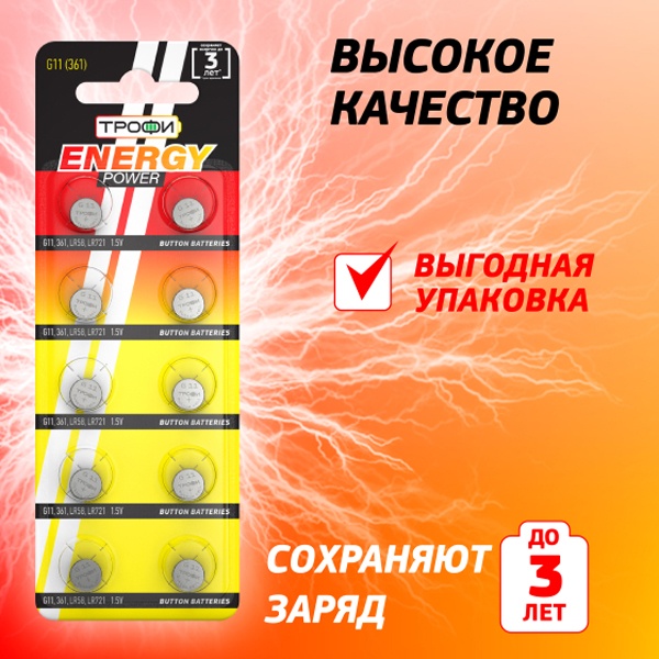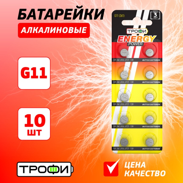 Щелочные элементы питания таблетка Трофи G11, (10 шт) в блистере C0035064