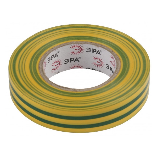 Лента поливинилхлоридная электроизоляционная с липким слоем, желто-зеленого цвета, ERA 15 мм х 10 м C0036559