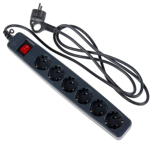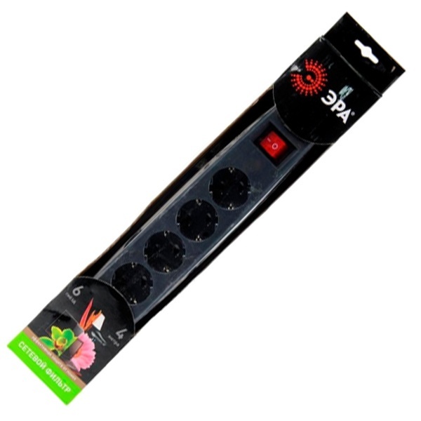 Сетевой фильтр с защитой от перегрузки и короткого замыкания, с защитой от импульсных и ВЧ помех, 6 гнезд, с выключателем, длина провода 4 метра, черный цвет C0039535