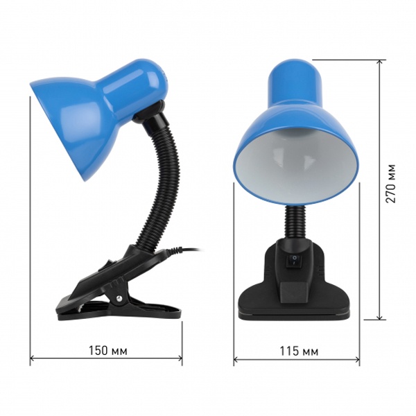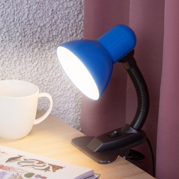 Настольный светильник с прищепкой, под лампу с цоколем E27, максимальная мощность лампы до 40Вт, цвет синий C0041426