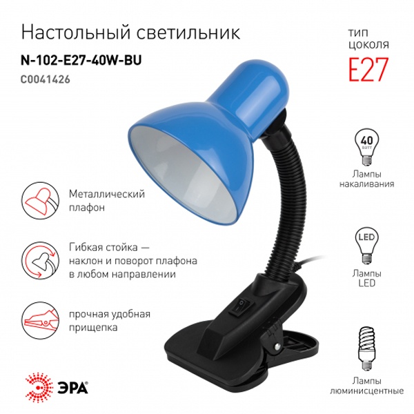 Светильник настол. N-102-E27-40W-BU син. ЭРА C0041426