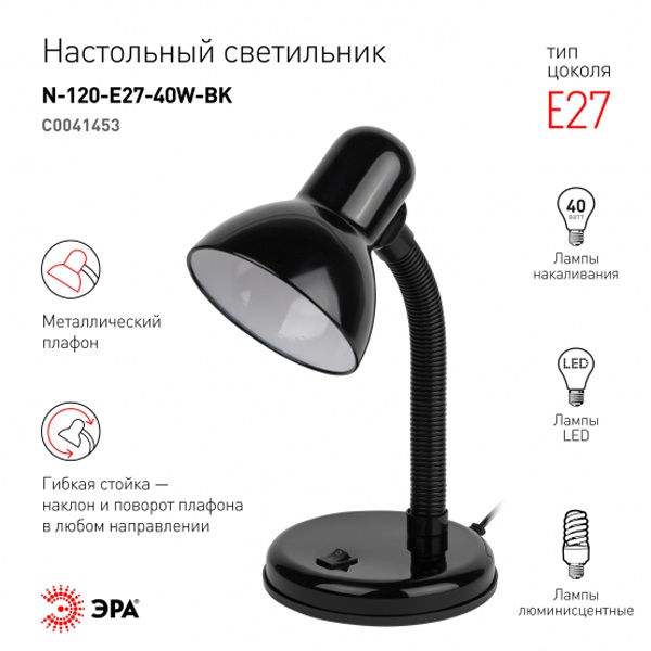 Светильник N-120-E27-40W-BK настол. черн. ЭРА C0041453
