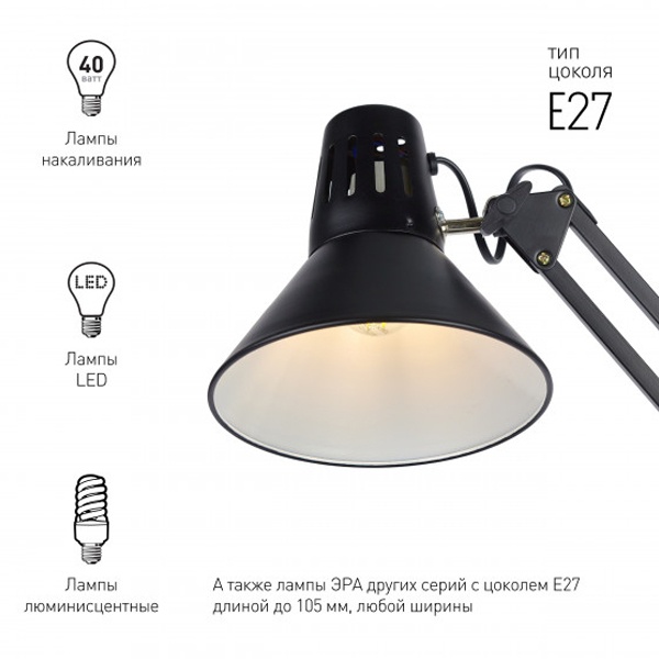 Светильник N-121-E27-40W-BK настол. черн. ЭРА C0041454