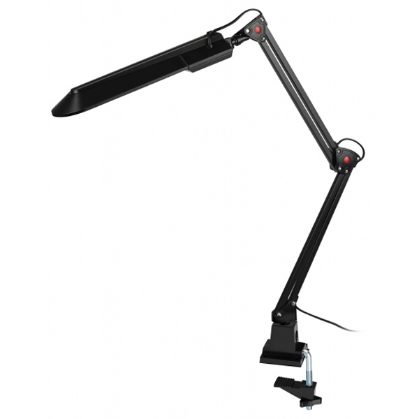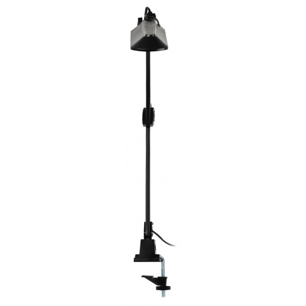 Светильник предназначен для использования с энергосберегающей лампой, лампа входит к комплект. Удобное крепление на струбцину к любой плоской поверхности. Высота плафона регулируется двухсекционной сгибающейся стойкой.
