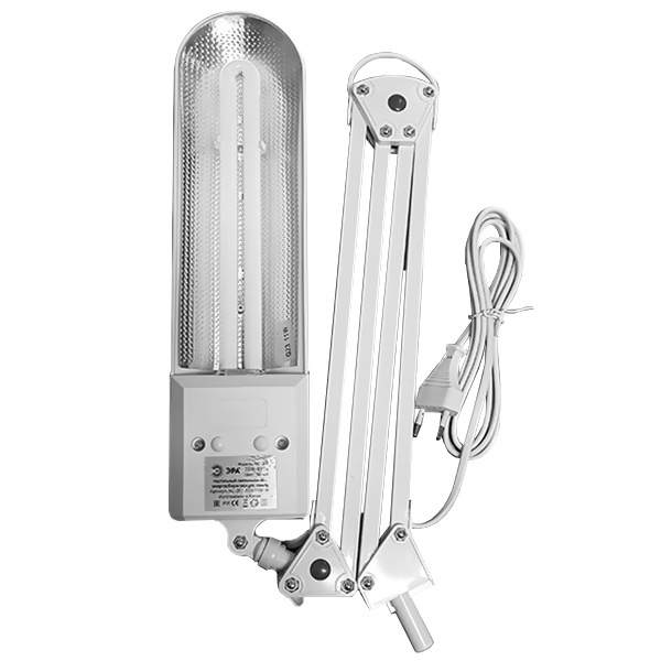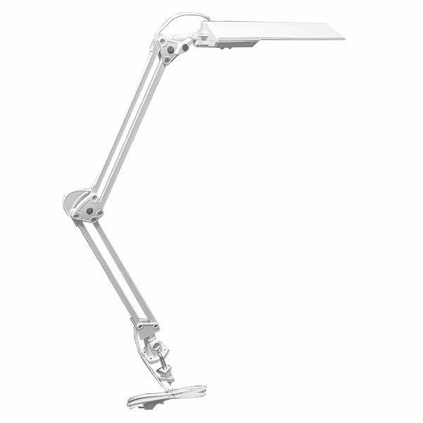 Светильник предназначен для использования с энергосберегающей лампой, лампа входит к комплект. Удобное крепление на струбцину к любой плоской поверхности. Высота плафона регулируется двухсекционной сгибающейся стойкой.