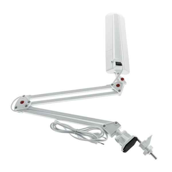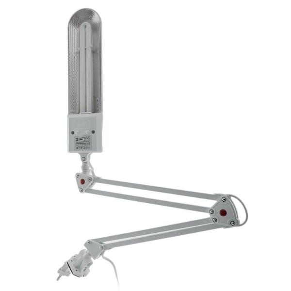 Светильник предназначен для использования с энергосберегающей лампой, лампа входит к комплект. Удобное крепление на струбцину к любой плоской поверхности. Высота плафона регулируется двухсекционной сгибающейся стойкой.