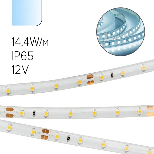 Влагозащищенная, светодиодная лента ЭРА LS5050, мощностью 14,4 Вт на метр, длиной 5 метров, холодный белый свет C0043047