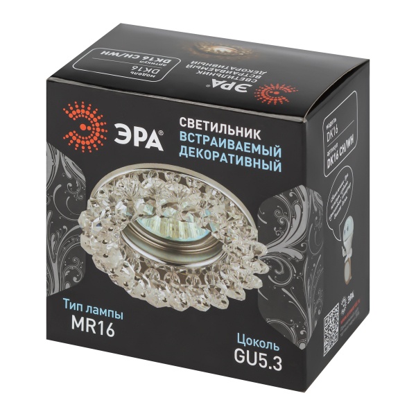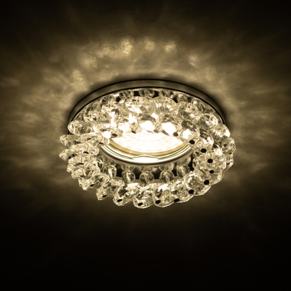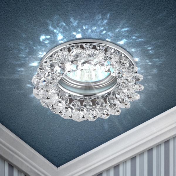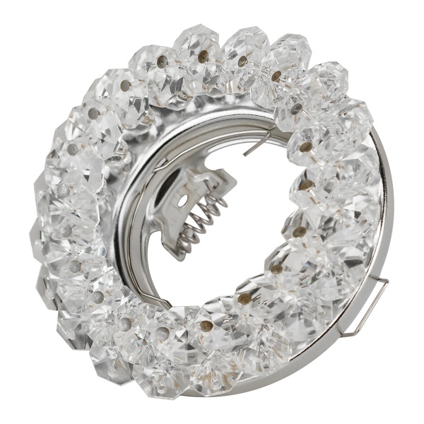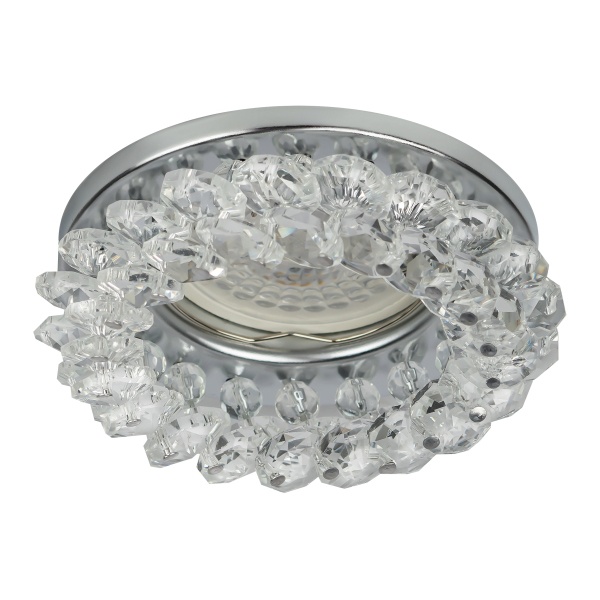 Встраиваемый точечный круглый светильник Эра модель DK16 с цоколем GU5.3, декоративные хрусталики, цвет хром/прозрачный. C0044737