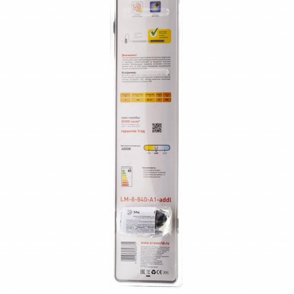 • Светодиодный дополнительный модуль ЭРА LM-8-840-A1-addl 8W 4000K 950Lm 800mm (без блока питания)