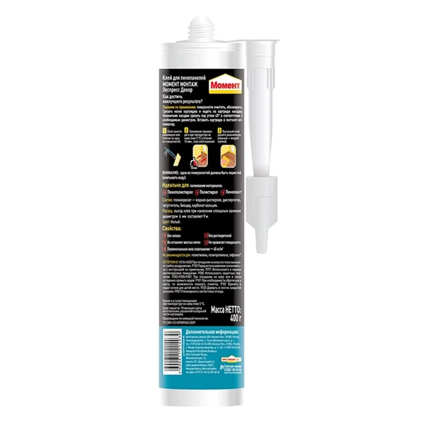 Момент Монтаж Экспресс Декор МВ-45 отлично подходит для крепления декоративных элементов из различных материалов.