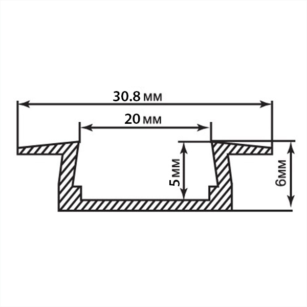 Профиль встраиваемый для светодиодной ленты FERON CAB252 «встраиваемый», цвет серебро, в комплекте 2 заглушки, экран, 2000*31*6мм