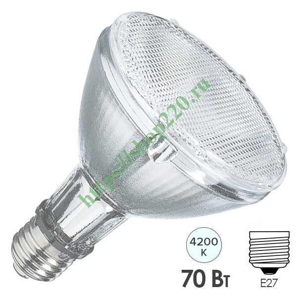 Металлогалогенная лампа Филипс PAR30 CDM-R мощностью 70 Ватт с цоколем E27 белого света. 871829165167300
