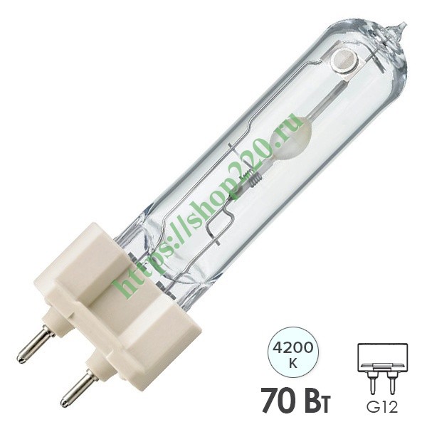 Газоразрядная лампа высокого давления мощностью 70 Вт с цоколем G12 белого (дневного) света 871829116362600
