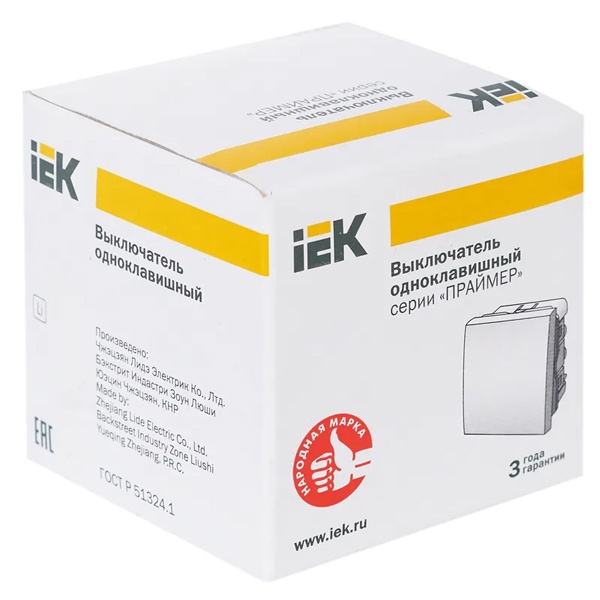 • Выключатель одноклавишный ИЭК Праймер 10А 2 модуля белый