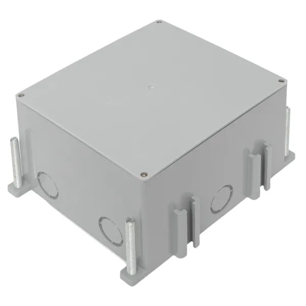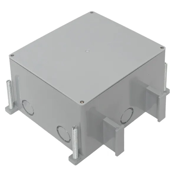 Установочная коробка для напольных лючков серии C-Line от компании EKF предназначена для монтажа в монолитных бетонных полах, ввод кабеля с помощью электромонтажных пластиковых или металлических труб. В комплекте идет укрывающая пластина, защищающая коробку от попаданиябетона при заливке. Размер 150х200х100 мм. Выполнена из негорючего серого пластика без содержания галогенов.