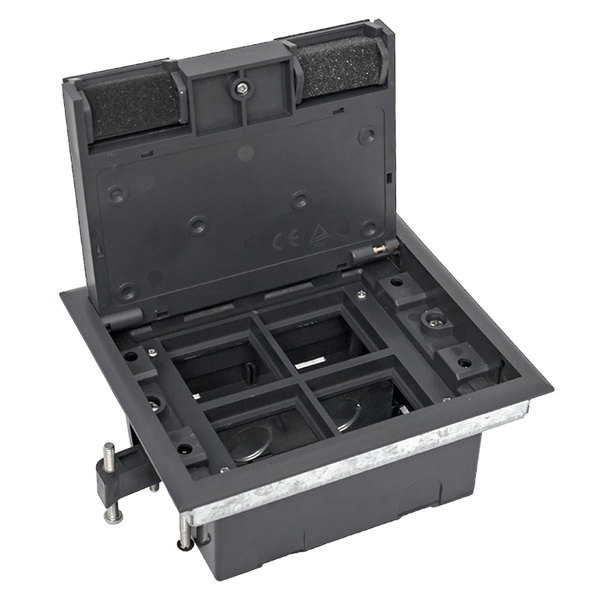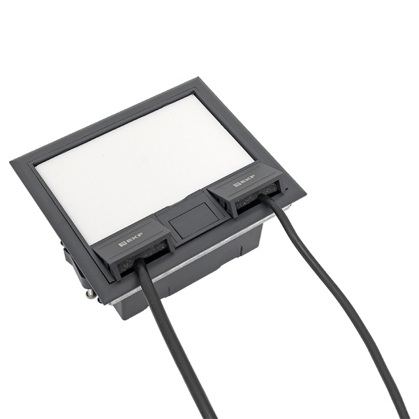 Лючки оборудованы отверстиями для ввода кабелей внутрь пола и выходами, позволяющими провести подключение непосредственно к конечным устройствам через крышку лючка. Внутри лючка имеются посадочные модули стандарта 45*45, предназначенные для установки розеток и других электрических компонентов.