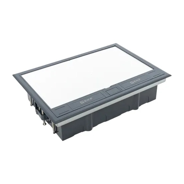 Напольный лючок под розетки — это прямоугольное устройство, предназначенное для компактной установки электрических и информационных розеток. Лючки могут монтироваться как самостоятельно в фальшпол, так и в сочетании с закладной коробкой, устанавливаемой при заливке бетонной стяжки. Конструкция лючка предусматривает ввод кабелей с пола и их вывод к потребителю через крышку. Внутри предусмотрены монтажные посты стандарта 45x45 для размещения различных типов розеток. Все лючки серии C-Line от EKF отличаются высокой прочностью и выдерживают нагрузку до 153 кг.