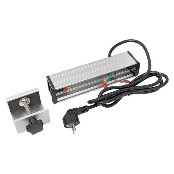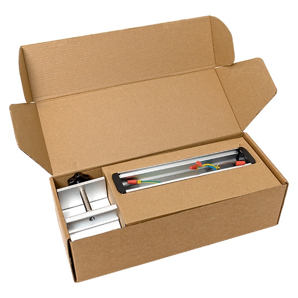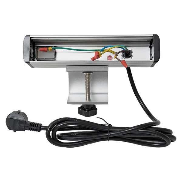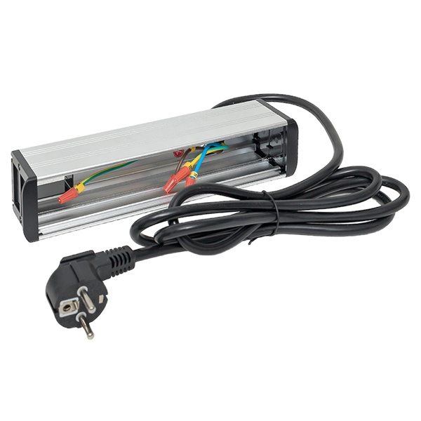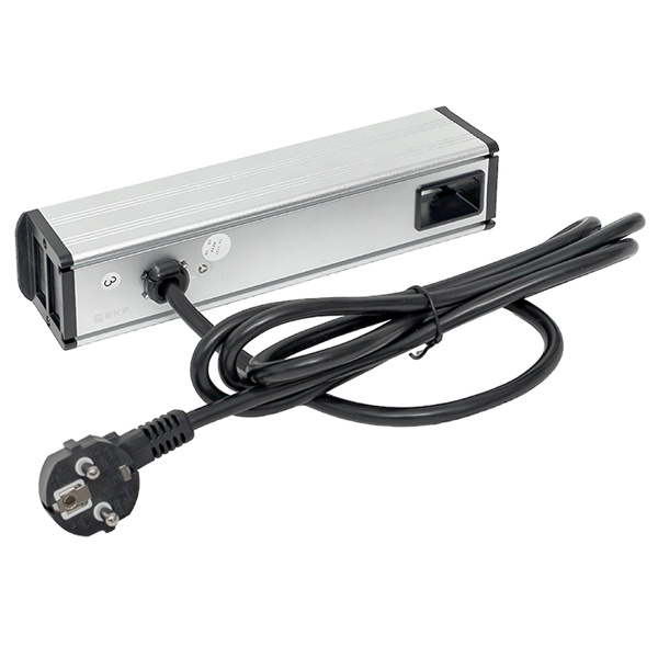 Розеточный блок прямоугольной формы, предназнач для размещения модульных электроустановочных изделий под столом. Розеточный блок монтируется на нижнюю поверхность стола при помощи струбцины.