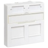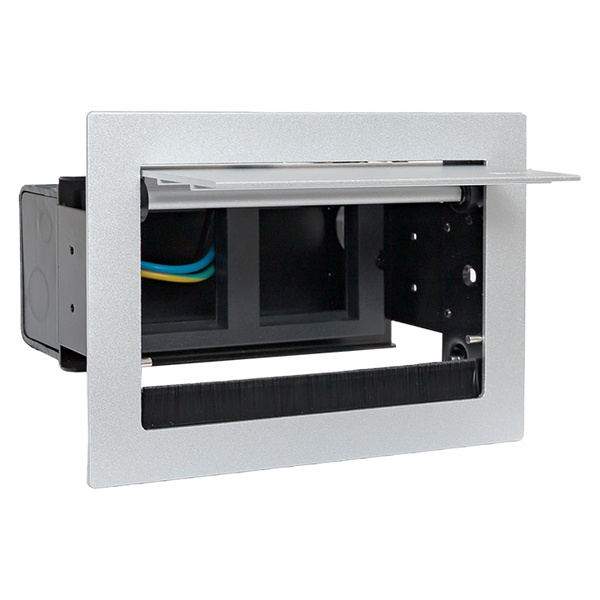Настольный лючок, включающий в себя верхнюю открывающуюся крышку и кронштейныдля крепления приборных рамок и приборной коробки. Настольный лючок предназначен для размещения электроустановочных изделий в столе. Монтаж производится в предварительно подготовленное отверстие 160х104 мм.