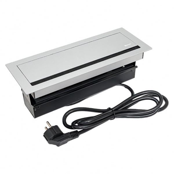 Встраиваемый прямоугольный настольный розеточный блок на 8 модулей, цвет металлик, EKF C-Line. cl-vnl-8-s