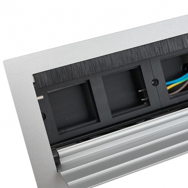 Рекомендации по применению: заранее продумайте состав модулей и подвод кабелей — силовые и слаботочные лучше разводить раздельно, чтобы не ловить наводки на линиях связи. В столешнице важно выдержать точную разметку под врезку и оставить снизу достаточно места под механизмы и радиусы изгиба проводов. Если лючок ставится в переговорной, имеет смысл заложить пару «пустых» модулей под будущие интерфейсы — это дешевле, чем потом переделывать мебель. Подключение силовых модулей выполняйте с нормальным сечением и аккуратной затяжкой клемм: в настольных точках соединения часто обслуживаются реже, чем в распределительных коробках, поэтому лучше сделать один раз и без компромиссов.