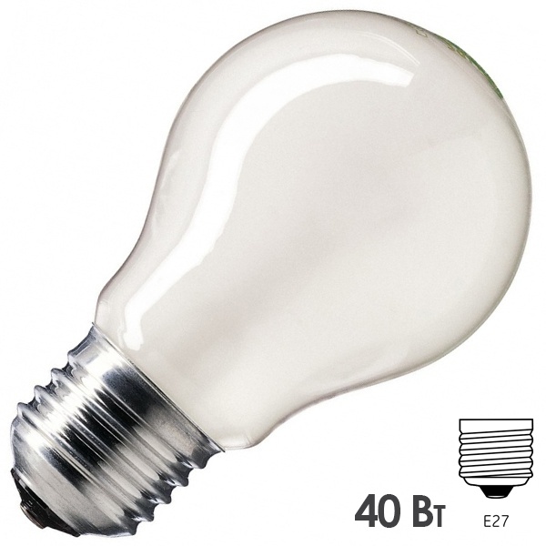 Обычная вольфрамовая лампа формы Груша мощностью 40 Вт на 220 Вольт с цоколем Е27 общего назначения 4008321419415