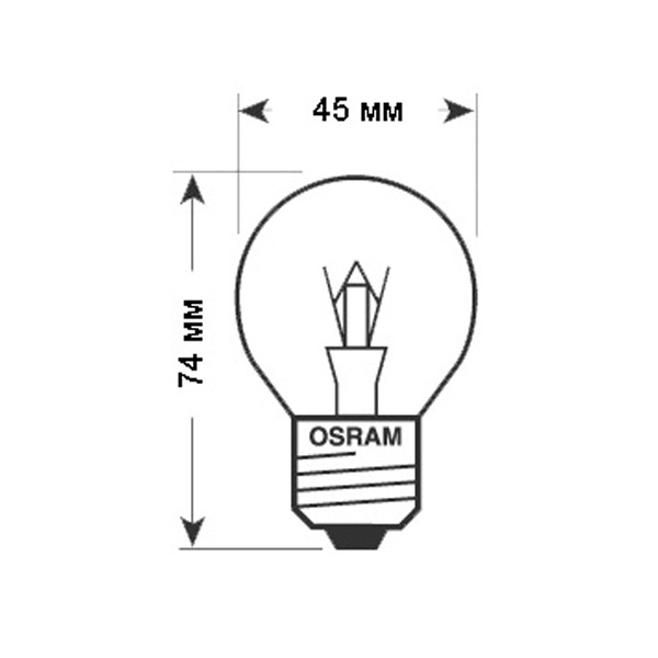 Лампа накаливания OSRAM формы шарик 40Вт. Прозрачная колба, цоколь Е27. Лицензиатом торговой марки OSRAM в общем освещении является компания LEDVANCE.
