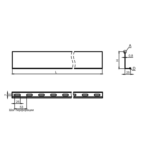 Разделительная перегородка предназначена для разделения кабельного лотка на две и более независимые секции при прокладке кабелей различного назначения в одном лотке. Основная задача перегородки - обеспечить физическое и электромагнитное разделение силовой и слаботочной (информационной, сигнальной) проводки, что позволяет снизить влияние электромагнитных помех и исключить появление наводок между кабелями разных типов.