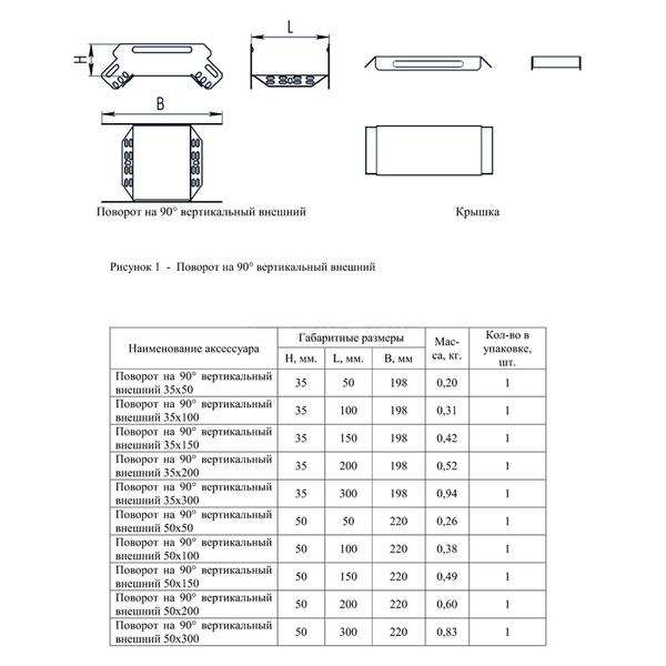 Поворот на 90° вертикальный внешний служит для организации вертикального поворота кабельной трассы на 90°. Данный аксессуар поставляется в комплекте с крышкой.