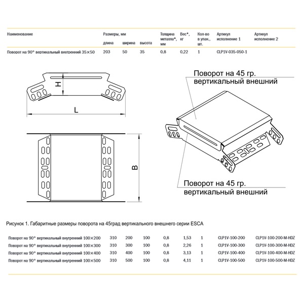 Вертикальный внешний угол 45 градусов, для кабельных листовых лотков IEK 100х500 мм с крышкой. CLP3N-100-500