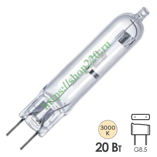 Газоразрядная лампа высокого давления мощностью 20 Вт с цоколем G8,5 теплого белого света 39858