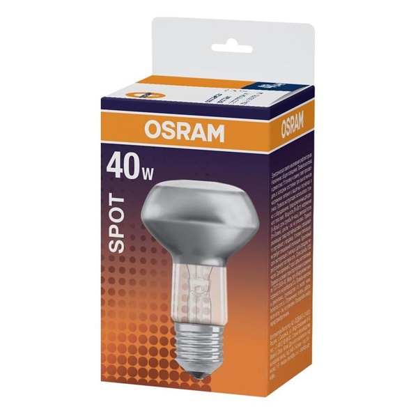 Лампа накаливания направленного света OSRAM CONCENTRA SPOT R63, 40Вт, цоколь Е27. Лицензиатом торговой марки OSRAM в общем освещении является компания LEDVANCE. Стеклянная колба. Подходит для акцентного освещения.