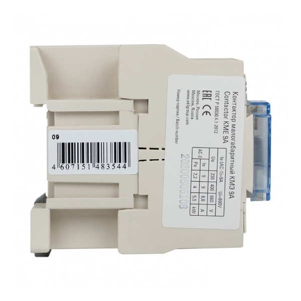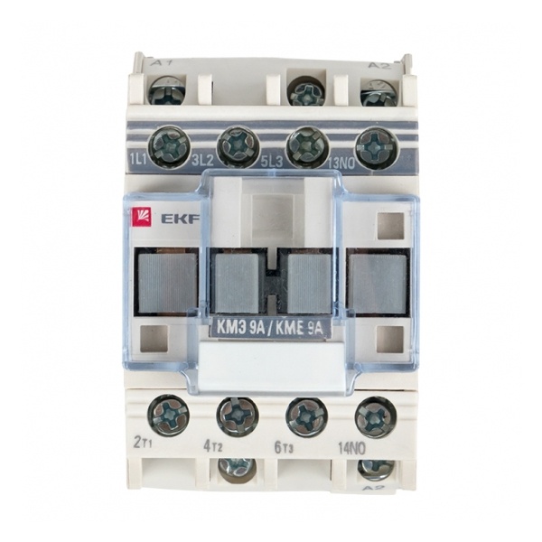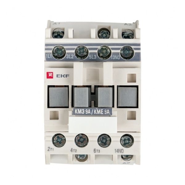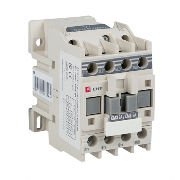 Контактор серии КМЭ от компании EKF Proxima представляет собой малогабаритный коммутационный агрегат, который служит для пуска и отключения, без предварительной остановки, двигателей с короткозамкнутым ротором, а также для коммутации неиндуктивных или слабо индуктивных нагрузок. Это практичное устройство, которое позволяет управлять нагрузкой в цепи переменного тока частотой 50/60 Герц с напряжением до 660 Вольт. Напряжение цепи управления - 220 Вольт. Оно подходит для категории применения АС 3 и АС 1. Аппарат состоит из корпуса, закрепленных в нем неподвижных и подвижных контактов, которые зафиксированы в подвижной части магнитной системы. При подаче напряжения на катушку управления контактора возникает магнитное поле, которое, преодолевая сопротивление пружины, замыкает контакты. В обратном случае контакты размыкаются. Корпус защищает от случайного касания к токоведущим частям. Данная модель рассчитана на номинальный рабочий ток в 9 Ампер и оснащена 1 группой дополнительных контактов (нормально открытыми). Прибор предназначен для подсоединения как алюминиевым, так и медным проводом. Крепление осуществляется на ДИН-рейку или винтовым способом на монтажную панель. Достоинствами аппарата серии КМЭ являются высокая коммутационная стойкость и наличие маркировки для идентификации контактора в щите. Габариты: 45х80х74 мм.
