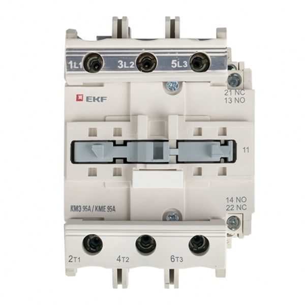 Контактор серии КМЭ от компании EKF Proxima представляет собой малогабаритный коммутационный агрегат, который служит для пуска и отключения, без предварительной остановки, двигателей с короткозамкнутым ротором, а также для коммутации неиндуктивных или слабо индуктивных нагрузок. Это практичное устройство, которое позволяет управлять нагрузкой в цепи переменного тока частотой 50/60 Герц с напряжением до 660 Вольт. Напряжение цепи управления – 220 Вольт. Оно подходит для категории применения АС 3 и АС 1. Аппарат состоит из корпуса, закрепленных в нем неподвижных и подвижных контактов, которые зафиксированы в подвижной части магнитной системы. При подаче напряжения на катушку управления контактора возникает магнитное поле, которое, преодолевая сопротивление пружины, замыкает контакты. В обратном случае контакты размыкаются. Корпус защищает от случайного касания к токоведущим частям. Данная модель рассчитана на номинальный рабочий ток в 95 Ампер и оснащена 2 группами дополнительных контактов (нормально открытыми и закрытыми). Прибор предназначен для подсоединения как алюминиевым, так и медным проводом. Крепление осуществляется на ДИН-рейку или винтовым способом на монтажную панель. Достоинствами аппарата серии КМЭ являются высокая коммутационная стойкость и наличие маркировки для идентификации контактора в щите. Габариты: 84х125х127 мм.