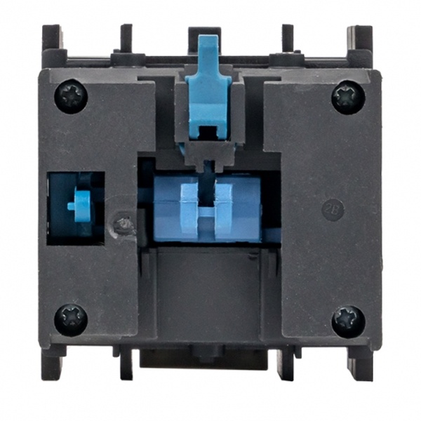 Позволяют получить задержку замыкания или размыкания вспомогательной цепи от 0,1 до 180 с. Приставка имеет один нормально разомкнутый (NO) и один нормально замкнутый (NC) контакт. Контактная приставка механически соединяется с контакторами и фиксируется при помощи защелки. Способ крепления обеспечивает жесткую и надежную связь между контактной приставкой и контактором.