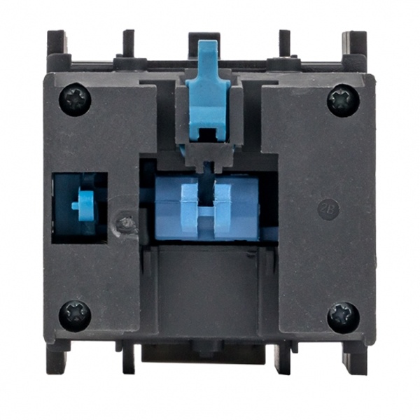 Позволяют получить задержку замыкания или размыкания вспомогательной цепи от 0,1 до 180 с. Приставка имеет один нормально разомкнутый (NO) и один нормально замкнутый (NC) контакт. Контактная приставка механически соединяется с контакторами и фиксируется при помощи защелки. Способ крепления обеспечивает жесткую и надежную связь между контактной приставкой и контактором.