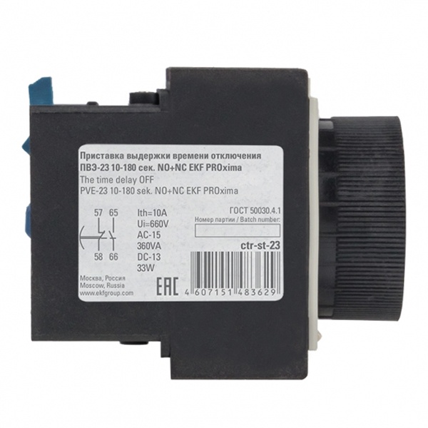 ctr-st-23 Приставка выдержки времени отключения EKF PROxima ПВЭ-23 10-180сек NO+NC