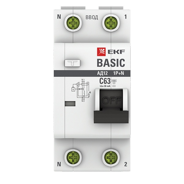 Выключатели автоматические дифференциального тока (дифавтоматы) АД-12 EKF серии Basic представляют собой аппараты, сочетающие функции автоматического выключателя с устройством защитного отключения. При обнаружении автоматическим выключателем в защищаемом участке сети тока утечки (повреждения) на землю или сверхтока (тока перегрузки или короткого замыкания) происходит срабатывание устройства, приводящее к отключению защищаемой сети.