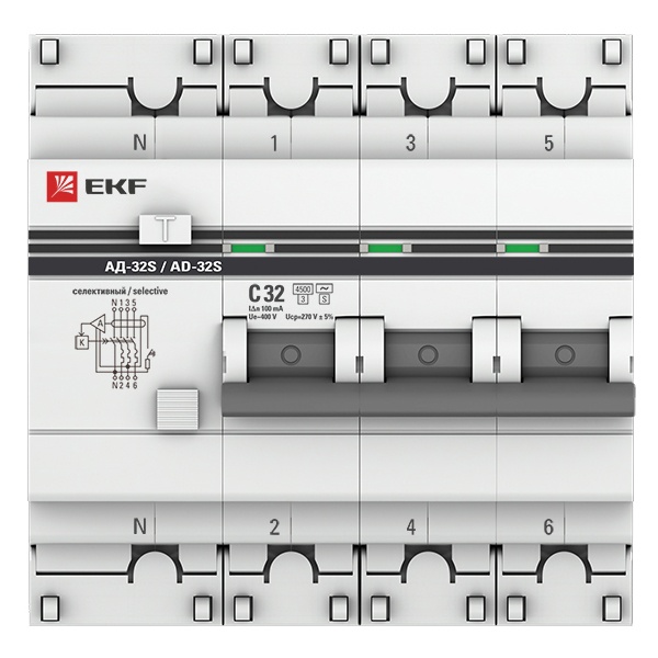 Дифференциальный автоматический выключатель АД-32 EKF PROxima представляет собой аппарат, сочетающий функции автоматического выключателя с устройством защитного отключения. При обнаружении автоматическим выключателем в защищаемом участке сети тока утечки (повреждения) на землю или сверхтока (тока перегрузки или короткого замыкания) происходит срабатывание устройства, приводящее к отключению защищаемой сети.