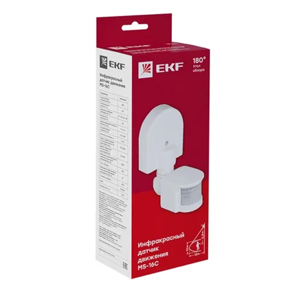 Датчик движения (ИК) MS-16C (ДД) настен. 1200Вт 180град. до 12м (рег.) IP44 EKF dd-ms-16C