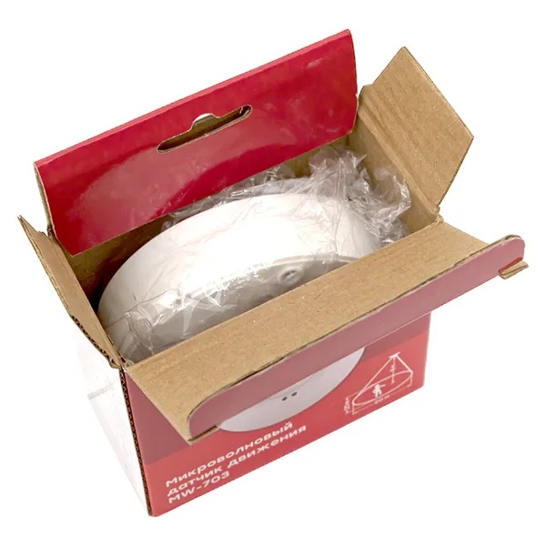 Микроволновый датчик движения для автоматического включения и отключения нагрузки, мощностью нагрузки до 1200 Ватт, с углом обзора 360°, зона действия 20 метров dd-mw-703