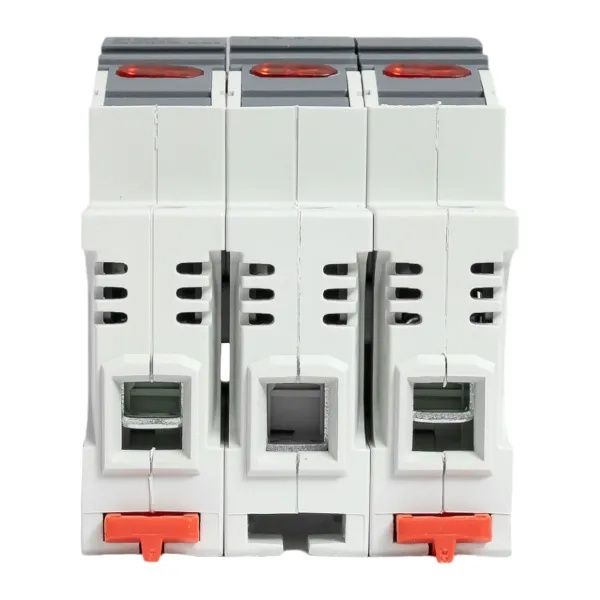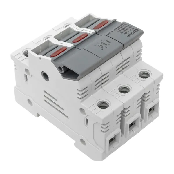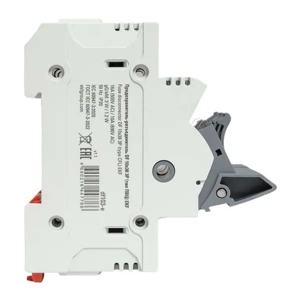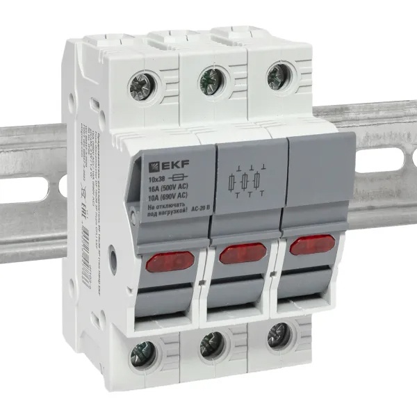 Трехполюсный модульный разъединитель для цилиндрических предохранителей ПВЦ 10х38мм с индикацией срабатывания, ЕКФ df103-e