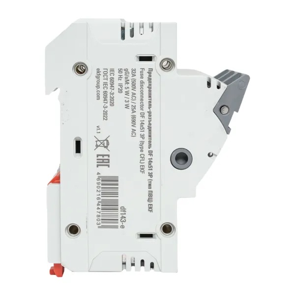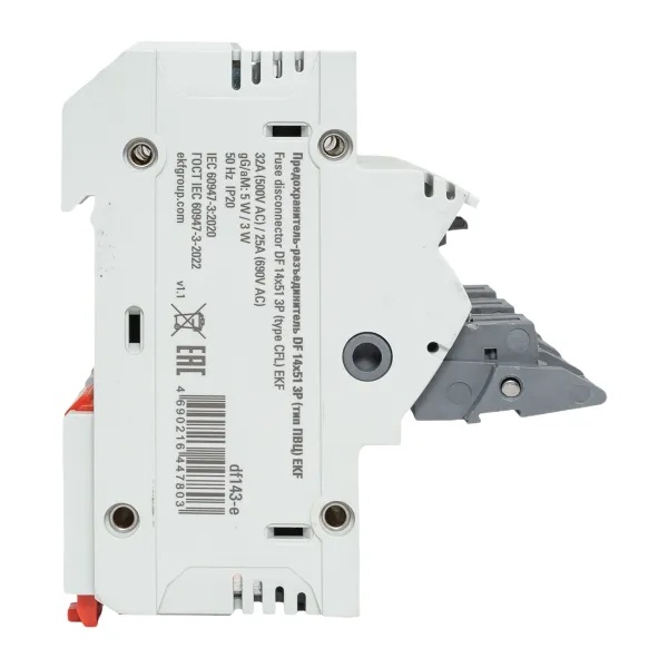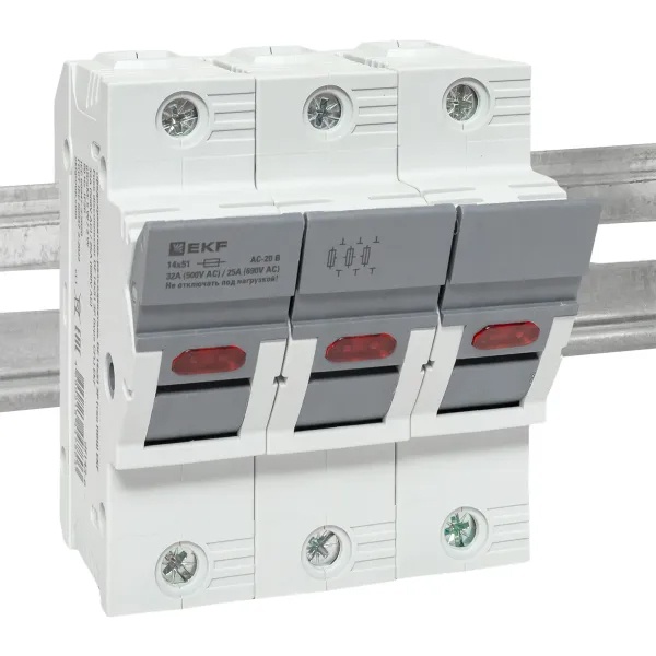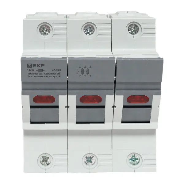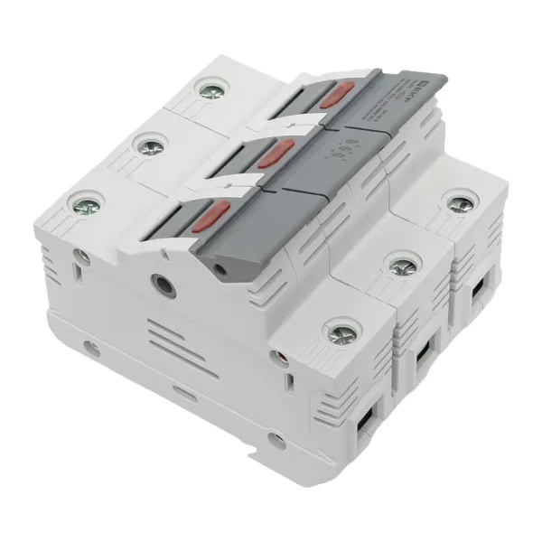 Трехполюсный модульный разъединитель для цилиндрических предохранителей ПВЦ 14х51мм с индикацией срабатывания, ЕКФ df143-e