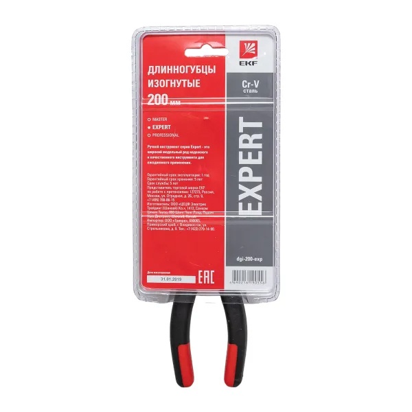 Длинногубцы изогнутые серии Эксперт длиной 200 мм ЭКФ dgi-200-exp