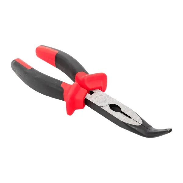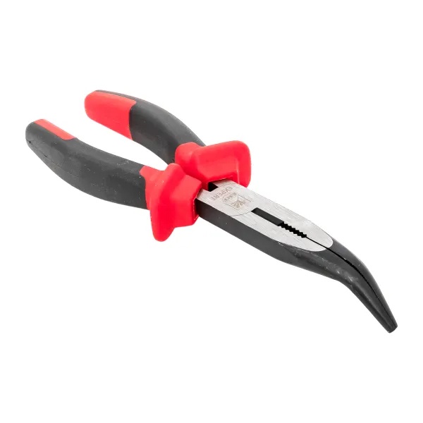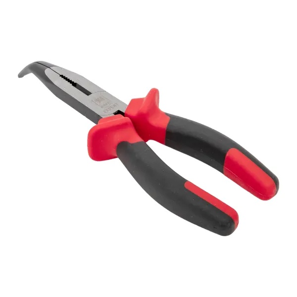 Длинногубцы изогнутые используются для захвата и удержания мелких элементов, проволоки, колец, винтиков и выполнения различных работ в труднодоступных местах.