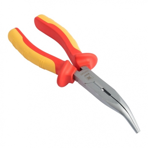 Изолированные изогнутые длинногубцы ЭКФ серии Эксперт длиной 200 мм, с двухкомпонентными ручками dgi-200-exp-in